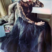 欧美风黑天鹅性感透视长款连衣裙晚装