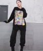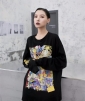 2019秋季 黑白色新款宽松卡通皮卡丘印花玩味hiphop秋冬打底t恤女