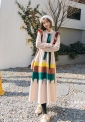 古拉良品gula原创连衣裙女秋冬打底温柔仙女拼色收腰修身针织长裙