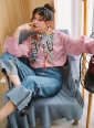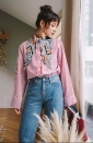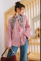 Original Design retro Barlott hit color pointed collar striped long style shirt