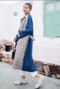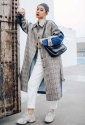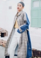 新款女外套格子撞色拼接复古中长款风衣过膝女装大衣