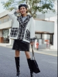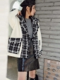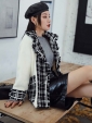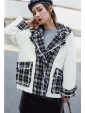 Fashion tweed suit collar fringed plaid stitching mink sweater