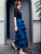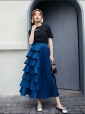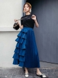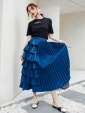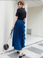 Mid-length high waist A-line pleated skirt ruffled maxi skirt