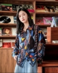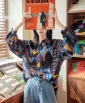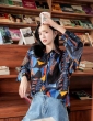 Designer style loose vintage Hongkong style chic long sleeve top shirt