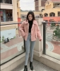 Japanese gentle style thin pink lamb fur coat