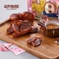 生产许可证编号:SC11642011210257产品标准号:GB/T 23586厂名:湖北皮皮鸭食品有限公司厂址:武汉市东西湖区走马岭食品一路13号(7号楼,8号楼)厂家联系方式:400-800-4900配料表:鸭肫,白砂糖,食用盐,味精,植物油,酿造酱油(含焦糖色),花椒,辣椒,香辛料,浓香型白酒,鸡精调味料,藤椒,蜂蜜。储藏方法:阴凉、干燥、通风处贮存保质期:180 天食品添加剂:焦糖色