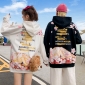 情侣卫衣秋冬装国潮牌富士山樱花连帽卫衣男潮流大码个性