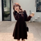高端轻奢名媛气质茶歇法式炸街赫本风小黑裙金丝绒连衣裙女秋冬季