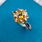 Golden Moissanite diamond ring, domineering styleLucky Yellow, Hearts and Arrows cut, super fire color, bursting invincible carat diamond,3 carats center stone, 9mm round, vvs1 clarity, finely inlaid in 925 silver