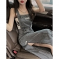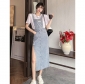 侧开叉牛仔背带连衣裙新款修身显瘦高级感中长款女装吊带