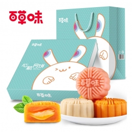 预售!百草味-心机月饼,果仁水果桃山皮月饼,2件包邮