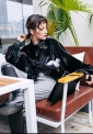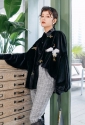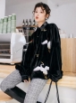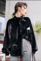 chic复古刺绣宽松港风冷淡长袖黑色衬衣秋季