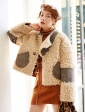 女麂皮绒皮毛一体拼接编织加厚短款羊卷毛