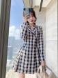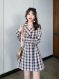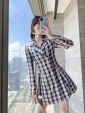 2020秋冬新款韩版御姐风格子西装连衣裙潮
