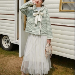 千鸟格毛呢外套女小香风淑女名媛短款外套