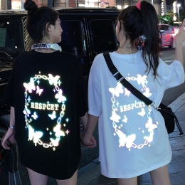 夏季2020新款宽松网红下衣失踪ins潮闺蜜装短袖蝴蝶T恤反光上衣女