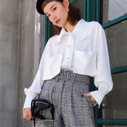 Chiffon Long Sleeve Retro Hong Kong Style Shirt