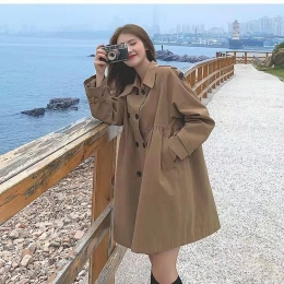 颜色:卡其色、白色、黑色 风格:韩版 服装版型:A字型 流行元素:纽扣 领型:西装领 衣长/袖长:中长款/长袖