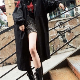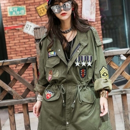 女中长款原宿军工装贴布休闲风衣