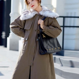 女方领中长款皮毛一体