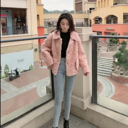 日系温柔风显瘦粉色羊羔毛外套