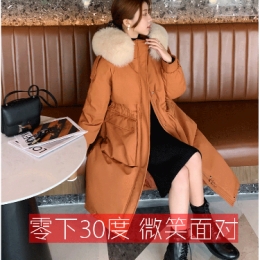 通勤: 韩版 领子: 连帽 衣门襟: 拉链 颜色分类: 焦糖色(环保毛领) 黑色(环保毛领) 粉色(环保毛领) 藏青色(环保毛领) 奶茶色(环保毛领) 袖型: 常规 填充物: 白鸭绒 袖长: 长袖 厚薄: 加厚 衣长: 中长款 服装版型: 修身型 流行元素/工艺: 带毛领 口袋 纽扣 拉链 充绒量: 200g(含)-250g(不含) 含绒量: 50%