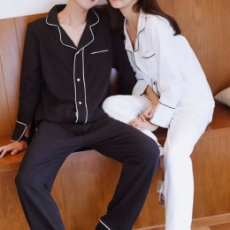 情侣睡衣女春秋冬季纯棉长袖韩版宽松学生黑白色薄家居服(女)