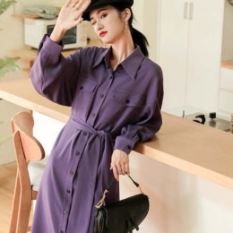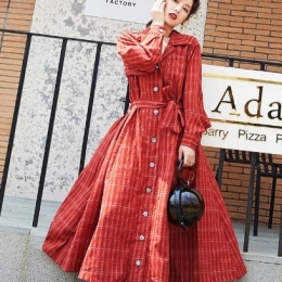 秋装新款中长衬衫裙收腰显瘦雪纺裙子