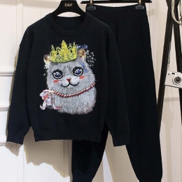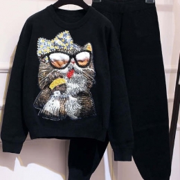 欧货洋气套装重工钉珠亮片猫咪减龄两件套