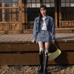Denim Short Skirt women's College style skirt two piece suit