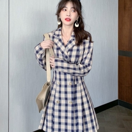 2020秋冬新款韩版御姐风格子西装连衣裙潮