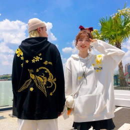 Lovers wear autumn and winter tide brand feather embroidery hooded sweater