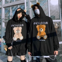 Hip-hop couple hooded sweater cute plush bear ears