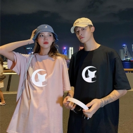 情侣装夏装小众设计感2020新款反光短袖t恤ins超火港风潮流 反光情侣短袖,*纯棉*品质