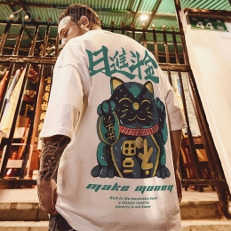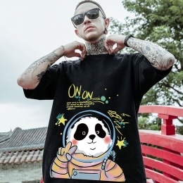 oversize国潮熊猫t恤短袖男潮牌大码中国风宽松纯棉体恤白色半袖