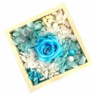 多彩玫瑰永生花木盒礼盒 - 天蓝色