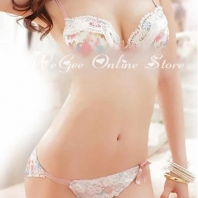 日系丝绸碎花蕾丝雪纺文胸套装