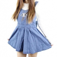可爱大蝴蝶结高腰牛仔吊带裙