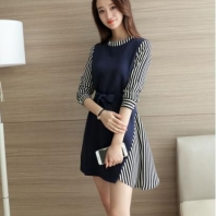 New Women's Temperament Long-sleeved Striped Color Stitching Dress