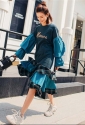 中长裙女慵懒风chic过膝早秋裙不规则连衣裙