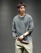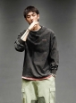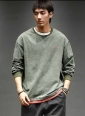 日系潮流做旧套头衫拼接假两件圆领卫衣