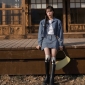 蓝色牛仔外套+牛仔半身裙两件套小个子显瘦
