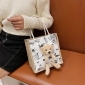 小熊竖款方形带拉链帆布手拎包,无肩带。